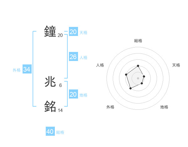 鐘 兆銘さんの総格は40画の2点!