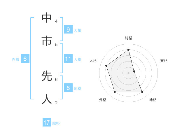 中市 先人さんの総格は17画の4点!