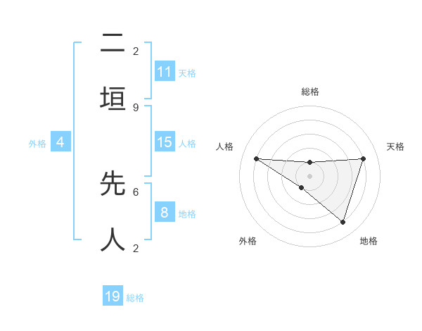 二垣 先人さんの地格は8画の4点!