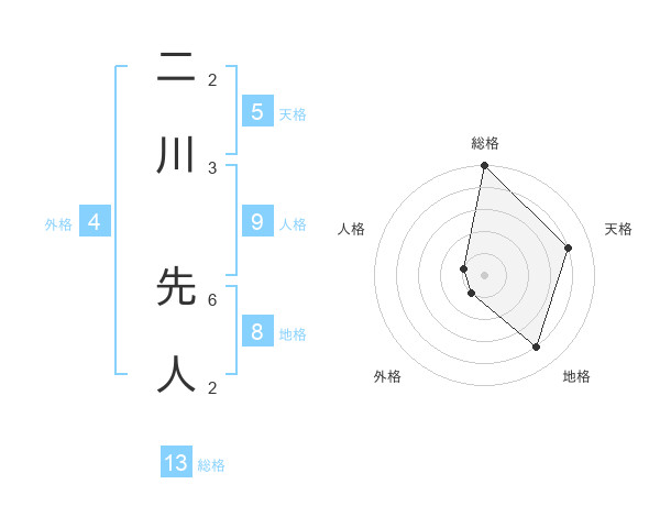 二川 先人さんの総格は13画の5点!