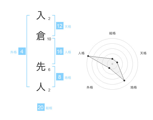 入倉 先人さんの総格は20画の1点!
