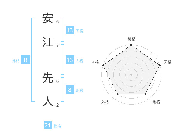 安江 先人さんの天格は13画の5点!