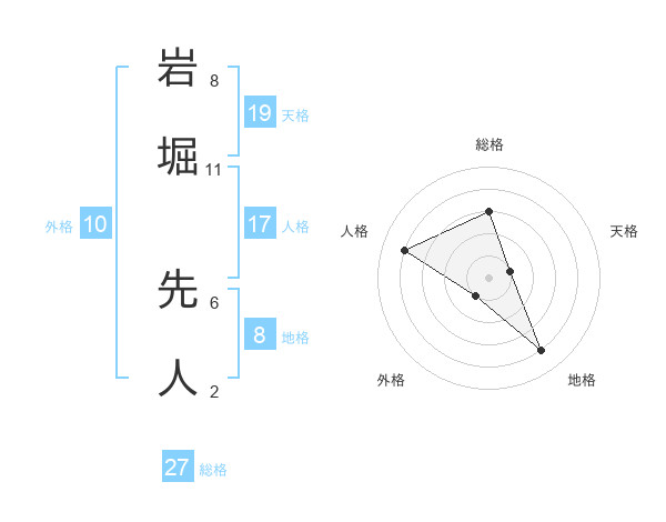 岩堀 先人さんの地格は8画の4点!