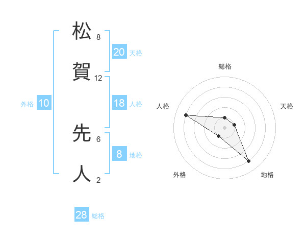 松賀 先人さんの総格は28画の1点!