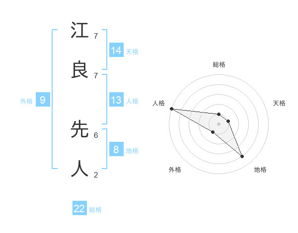 江良 先人さんの総格は22画の1点!