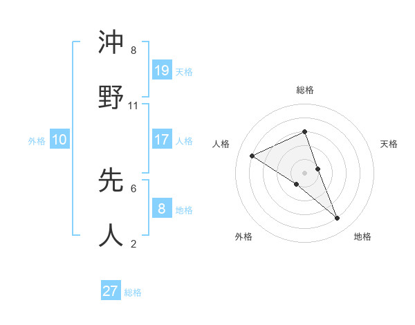 沖野 先人さんの総格は27画の3点!