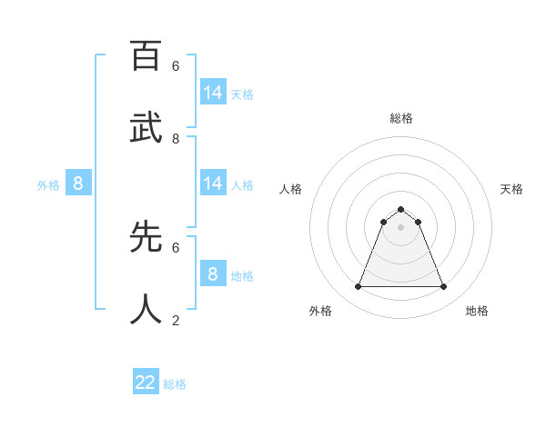 百武 先人さんの総格は22画の1点!