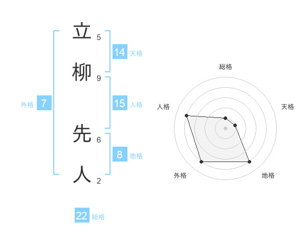 立柳 先人さんの総格は22画の1点!