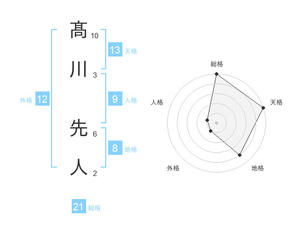 髙川 先人さんの天格は13画の5点!