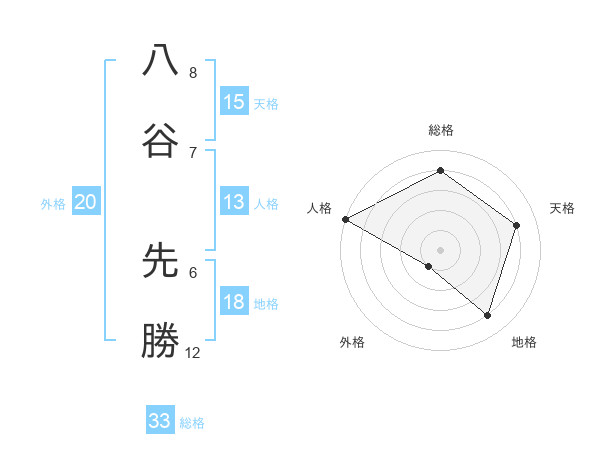 八谷 先勝さんの総格は33画の4点!