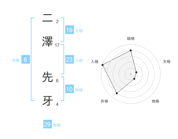 二澤 先牙さんを姓名の画数から五運を鑑定