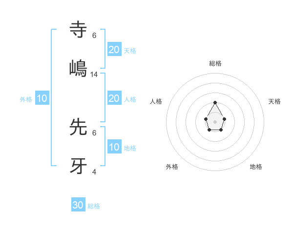 寺嶋 先牙さんの総格は30画の2点!