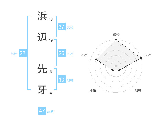 浜辺 先牙さんの総格は47画の5点!