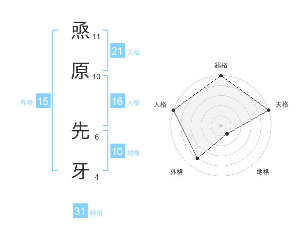焏原 先牙さんを姓名の画数から五運を鑑定