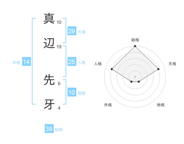 真辺 先牙さんを姓名の画数から五運を鑑定