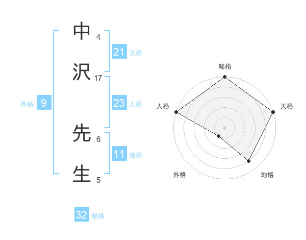 中沢 先生さんの総格は32画の5点!