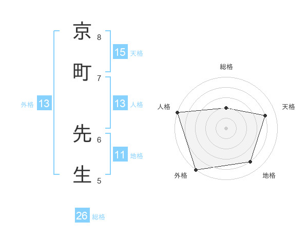 京町 先生さんの外格は13画の5点!