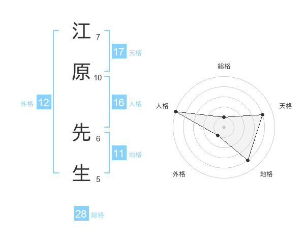 江原 先生さんの総格は28画の1点!