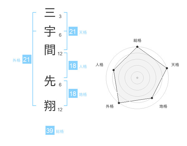 三宇間 先翔さんを姓名の画数から五運を鑑定