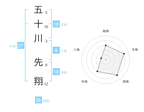 五十川 先翔さんを姓名の画数から五運を鑑定