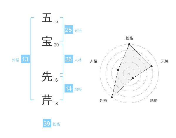五宝 先芹さんを姓名の画数から五運を鑑定