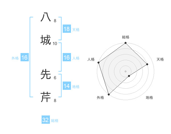 八城 先芹さんの天格は18画の4点!