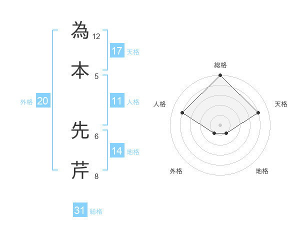 家系が持つ宿命的な運勢を表します。祖先から受け継いだ苗字ですので自分の力が及びません。家柄を象徴します。