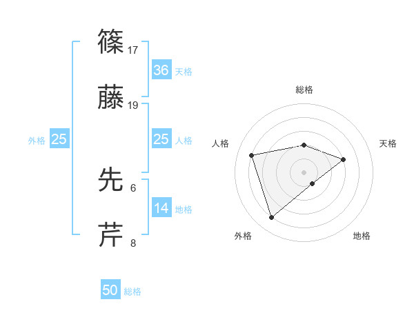 篠藤 先芹さんを姓名の画数から五運を鑑定