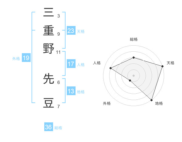 三重野 先豆さんを姓名の画数から五運を鑑定