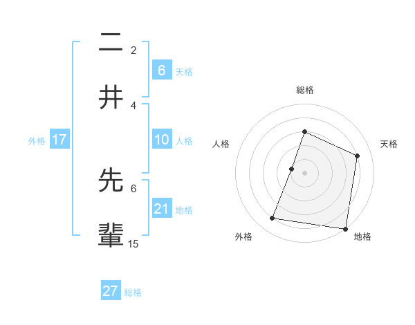 二井 先輩さんの地格は21画の5点!