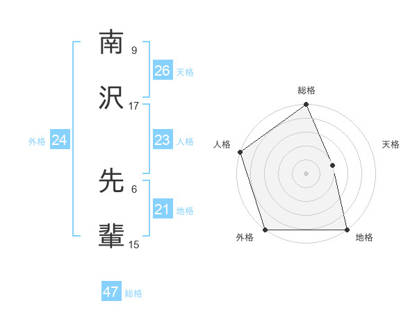 南沢 先輩さんを姓名の画数から五運を鑑定
