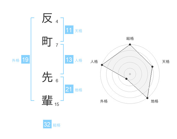 反町 先輩さんの総格は32画の5点!