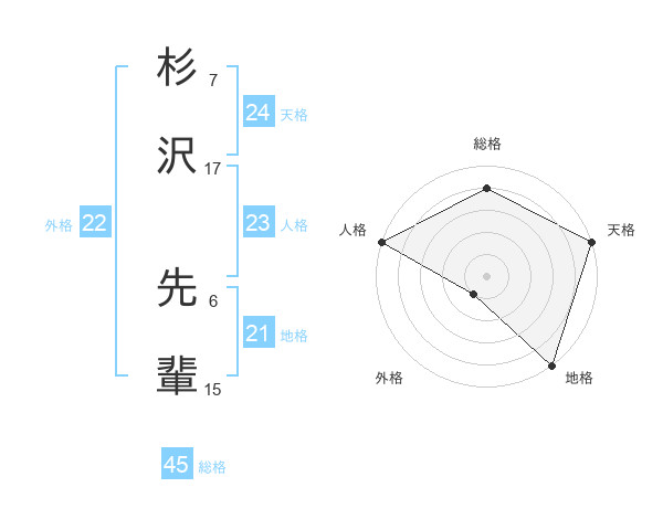 杉沢 先輩さんを姓名の画数から五運を鑑定