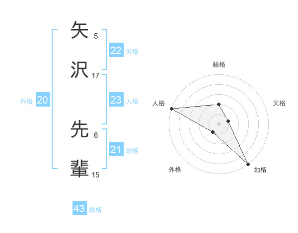 矢沢 先輩さんの総格は43画の2点!