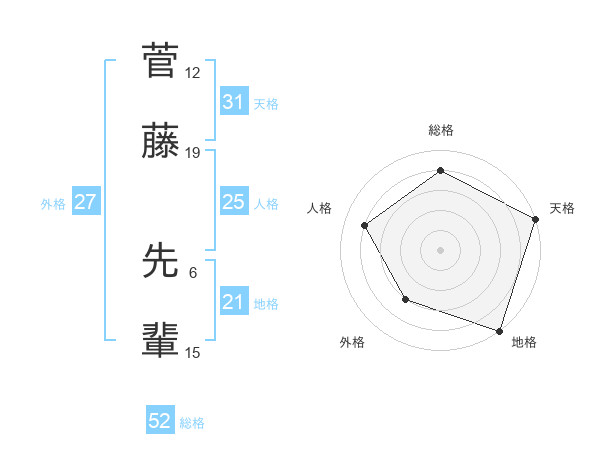 菅藤 先輩さんを姓名の画数から五運を鑑定