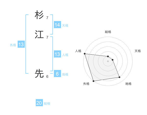 杉江 先さんの外格は13画の5点!