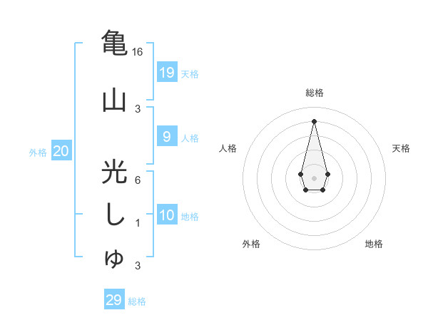 亀山 光しゅさんの総格は29画の4点!