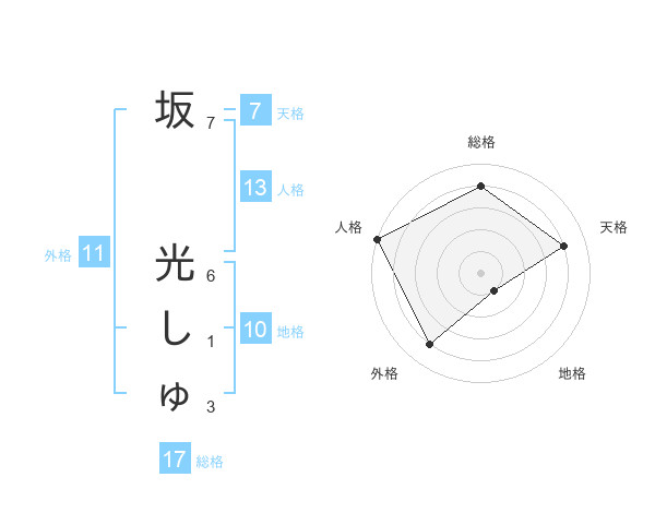 坂 光しゅさんを姓名の画数から五運を鑑定