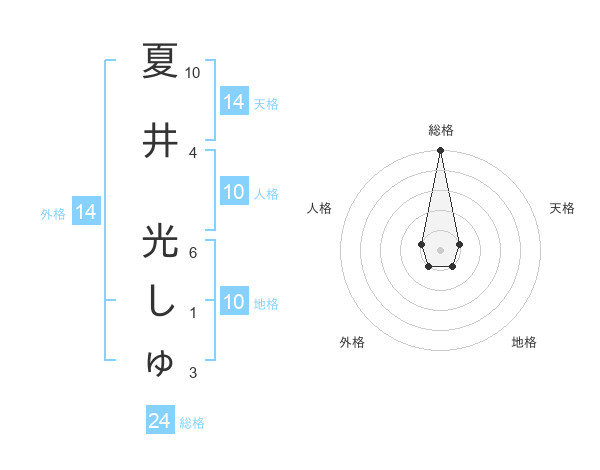 夏井 光しゅさんの地格は10画の1点!