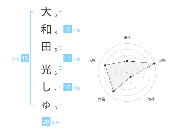 大和田 光しゅさんを姓名の画数から五運を鑑定