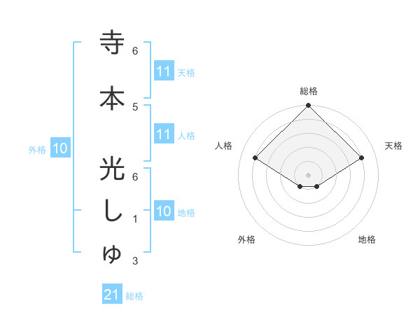 寺本 光しゅさんの総格は21画の5点!