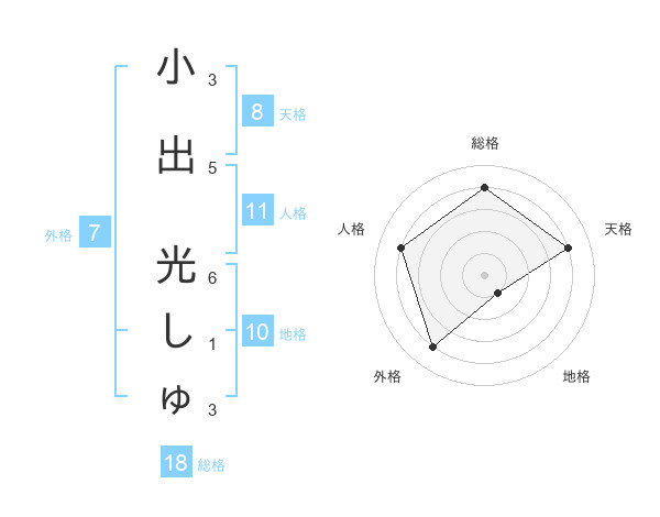 小出 光しゅさんの天格は8画の4点!