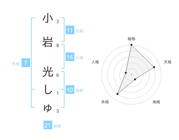 小岩 光しゅさんを姓名の画数から五運を鑑定
