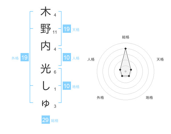 木野内 光しゅさんを姓名の画数から五運を鑑定