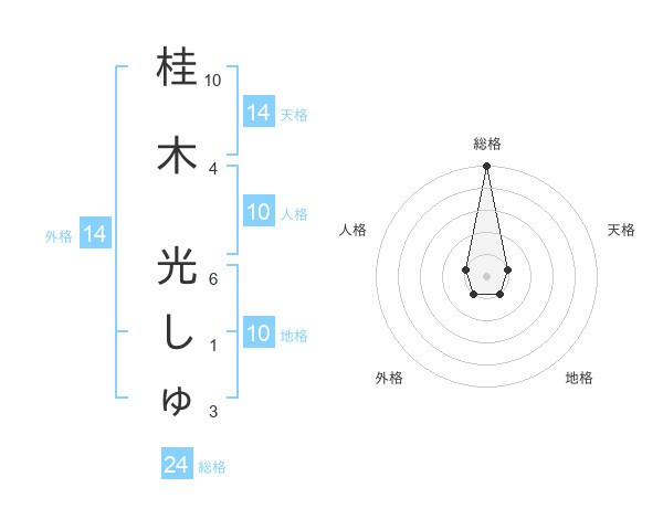 桂木 光しゅさんを姓名の画数から五運を鑑定