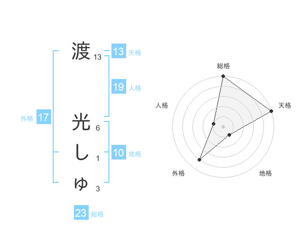 渡 光しゅさんを姓名の画数から五運を鑑定
