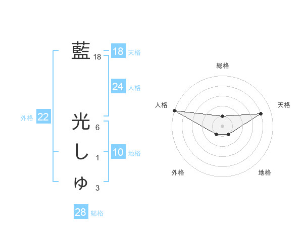 藍 光しゅさんの天格は18画の4点!