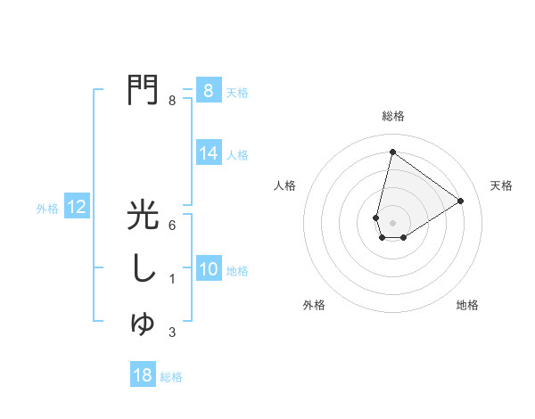 門 光しゅさんの総格は18画の4点!