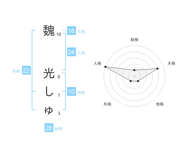 魏 光しゅさんの天格は18画の4点!