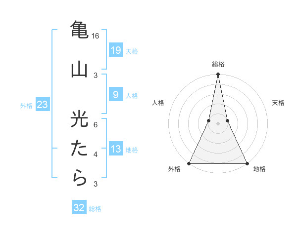亀山 光たらさんを姓名の画数から五運を鑑定
